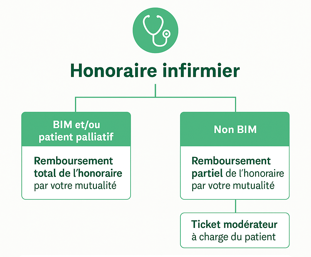 👉 Il peut rester un ticket modérateur, c’est-à-dire la partie légale à votre charge, fixée par l’INAMI selon les soins effectués.
